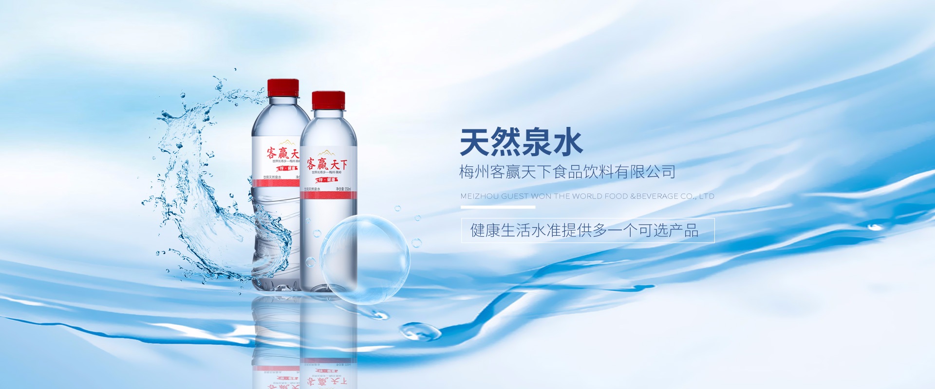 梅州客贏天下長壽水業有限公司是一家生產弱堿性天然飲用水的企業,位于第七個世界長壽鄉--蕉嶺華僑農場北坑村五馬山,水源天然純凈含多種礦物質微量元素,是健康的好水。現為珠海各機關單位、協會、商會、企業單位舉辦高端會議及活動送上一份真誠的祝福和溫馨的問候。